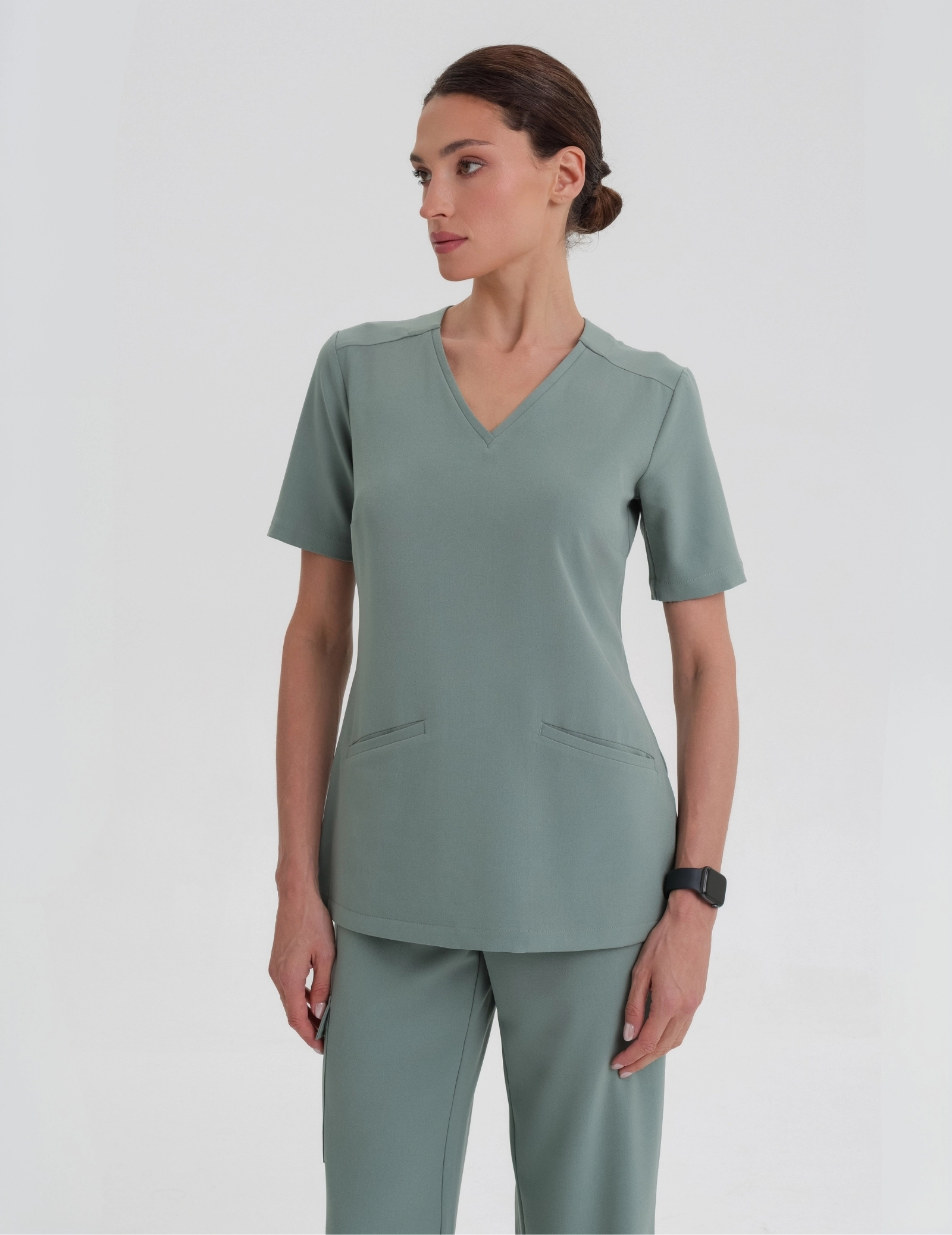 La Casacca Medica Casy presenta un taglio sagomato che valorizza delicatamente lo scollo, il collo e le spalle. Gli spacchi laterali aumentano il comfort e la libertà di movimento.