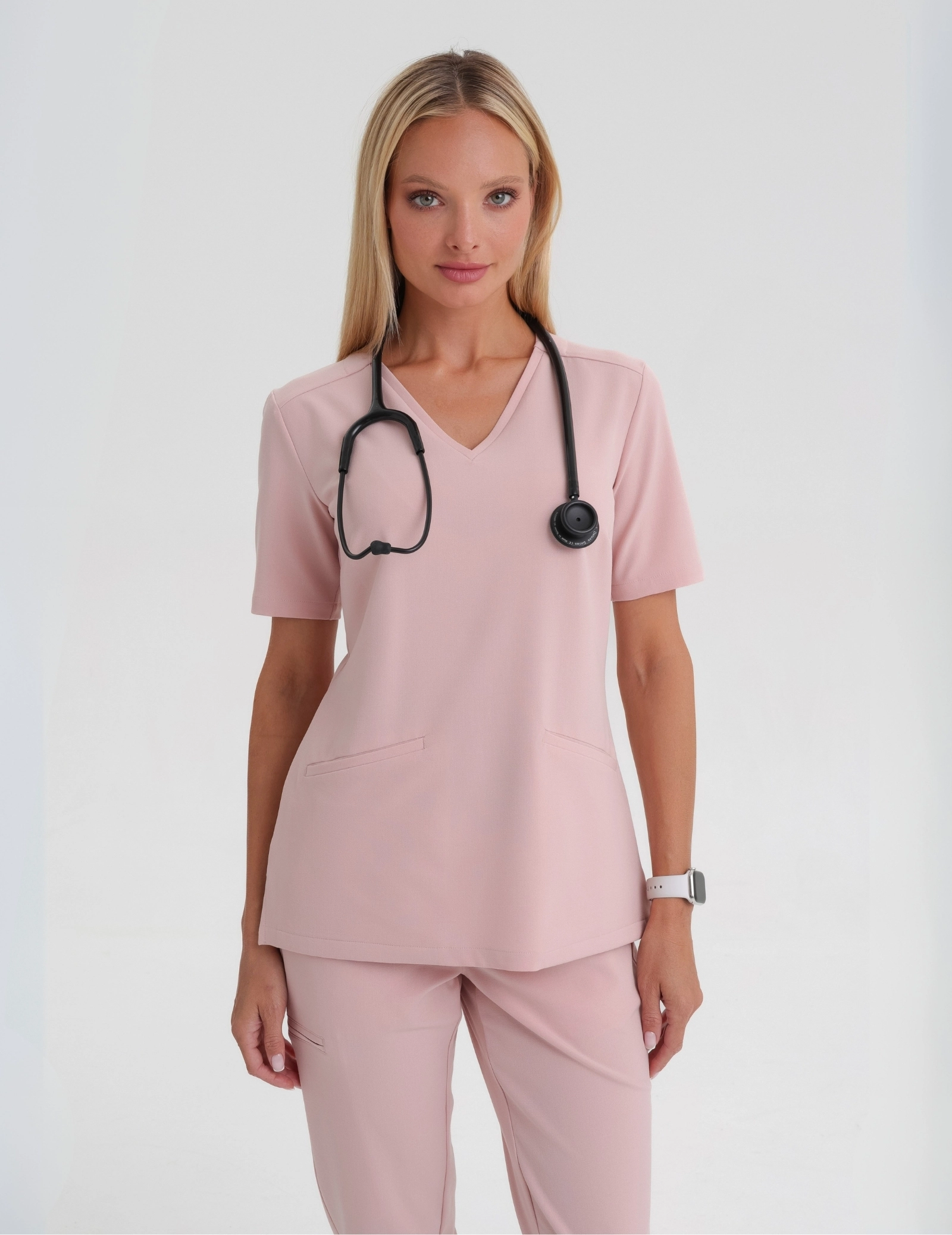La Casacca Medica Casy presenta un taglio sagomato che valorizza delicatamente lo scollo, il collo e le spalle. Gli spacchi laterali aumentano il comfort e la libertà di movimento.
