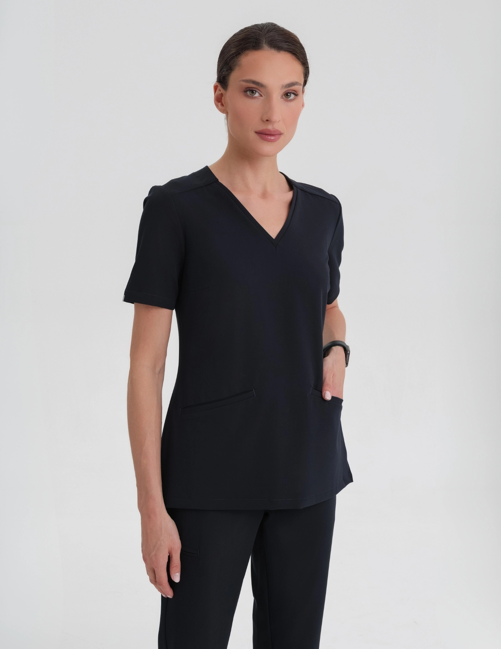 La Casacca Medica Casy presenta un taglio sagomato che valorizza delicatamente lo scollo, il collo e le spalle. Gli spacchi laterali aumentano il comfort e la libertà di movimento.