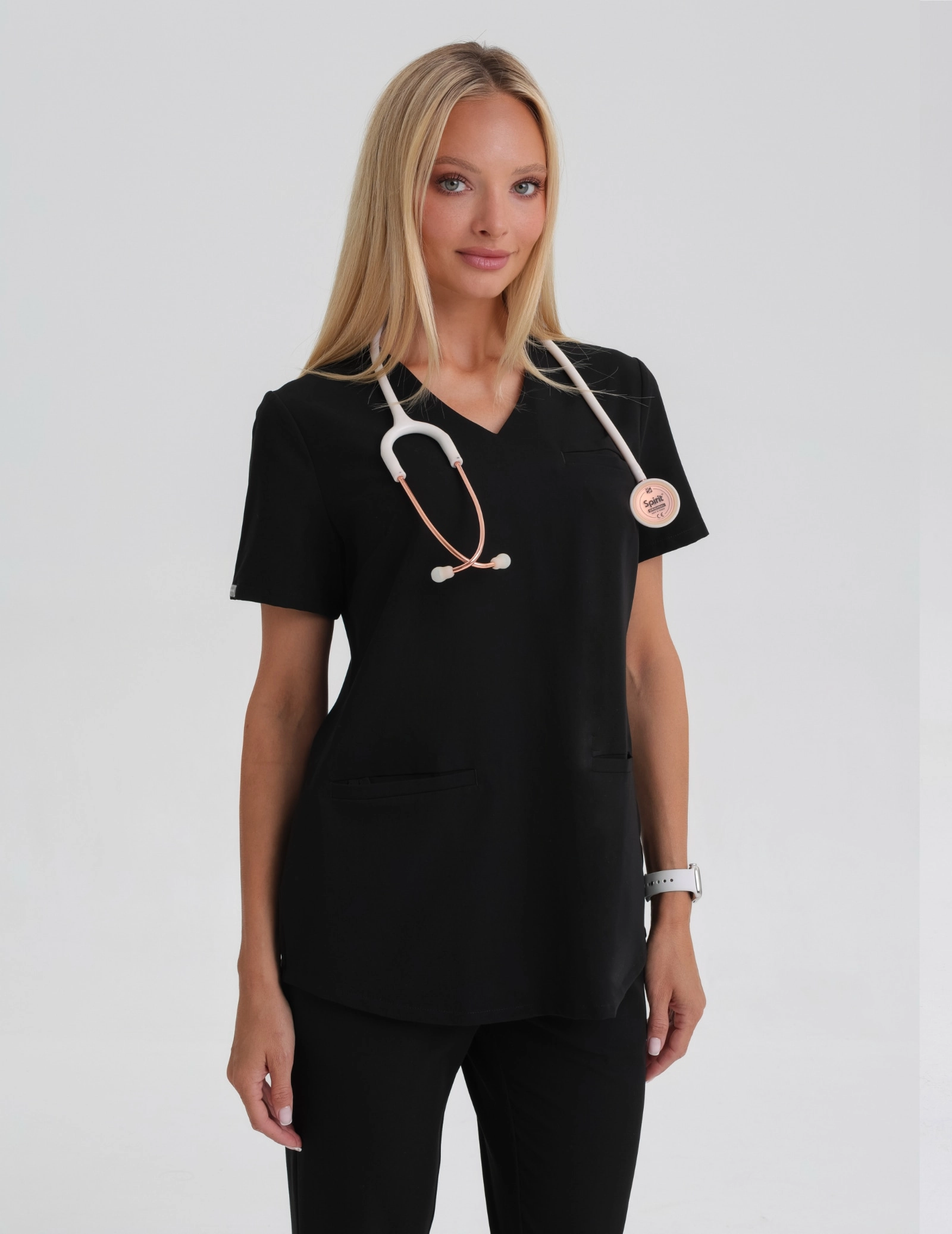 Lo scollo senza cuciture e il taglio curato - più lungo sul davanti e sul retro, più corto ai lati - conferiscono alla casacca un carattere moderno ed elegante. La Casacca Medica Grace - BLACK è la scelta ideale per le professioniste della medicina che cercano una combinazione perfetta di comfort, eleganza e funzionalità in un unico capo.