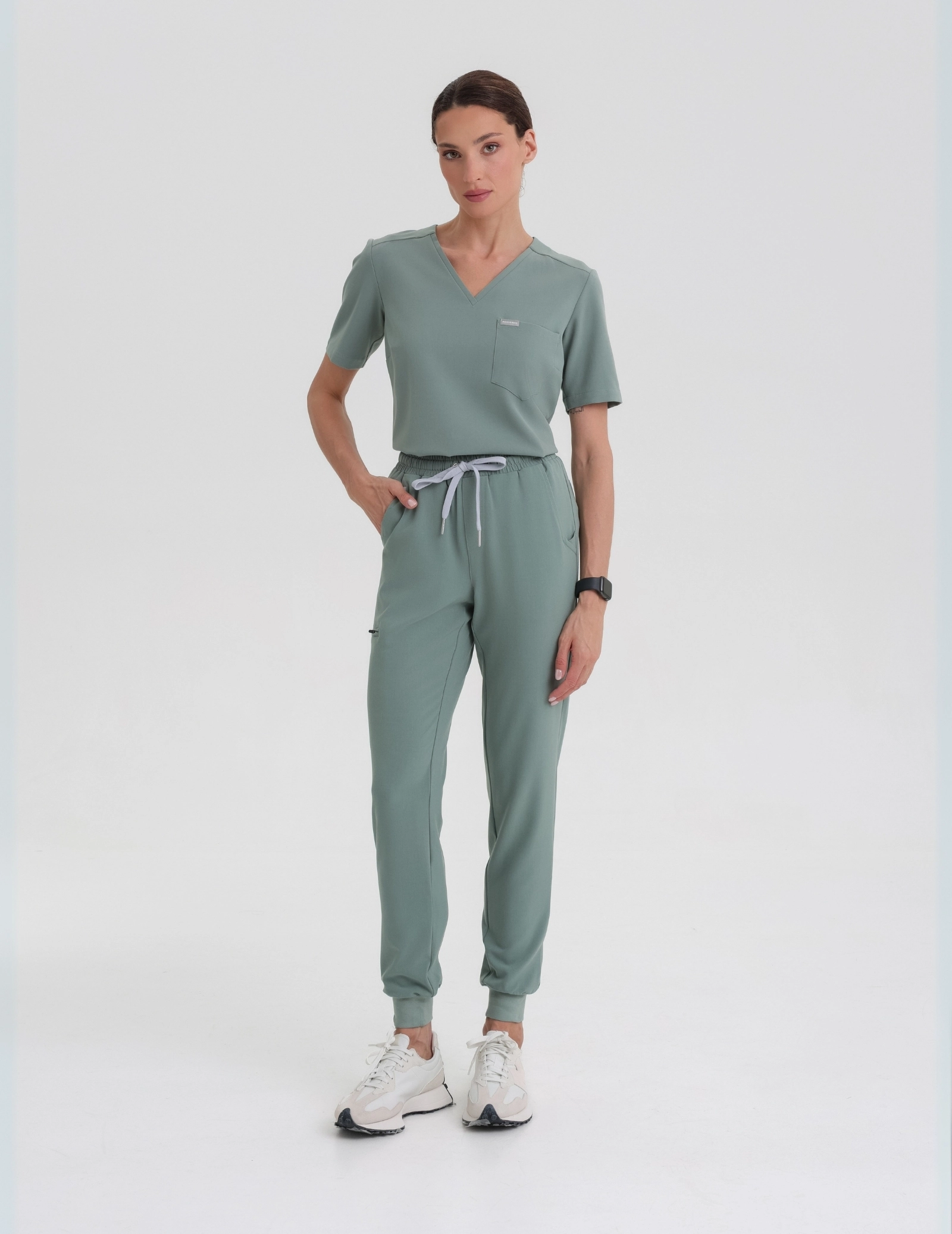 I Pantaloni Medici Donna Jogger presentano una gamba affusolata verso il fondo, rifinita con comodi polsini in maglia che non stringono le caviglie. Sono dotati di vita alta e di un cavallo confortevole dal taglio ergonomico. Sentiti al lavoro come in una tuta comoda. Massimo comfort e aspetto professionale.